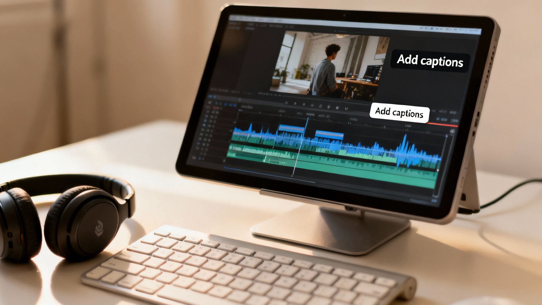 Your voiceover needs to be clean. Find a quiet room, use a decent microphone, and speak clearly. The tone is everything here; it should perfectly match your brand's personality. If you're making a high-energy TikTok ad, bring that excitement. If it's a technical tutorial, a calm, reassuring voice works best. The goal is to sync your words with the action on screen.